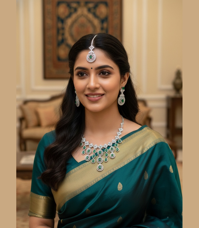 - Complete Jewellery Set: The KACPER Traditional Gold Plated AD Stone Collar Bone Necklace Earring with Maangtika Jewellery Set offers a complete ensemble for women who appreciate the beauty of traditional Indian jewellery. It’s a perfect choice for festivals, cultural events, weddings, and other special occasions.http://Kacper Women’s Traditional Gold Plated AD Stone Colour Green Collar Bone Necklace Set