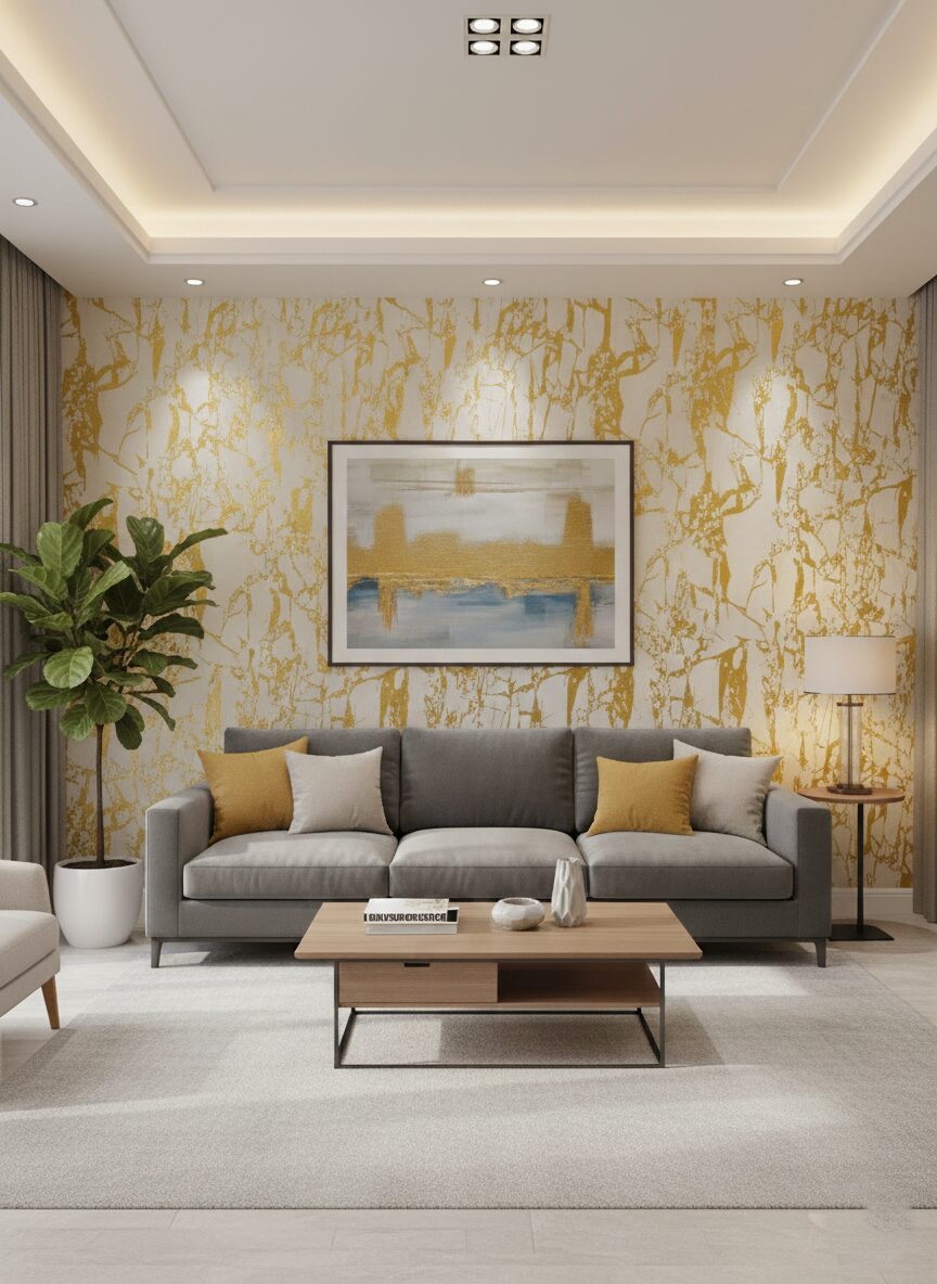 Wallpaper For Wall Living Room PVC Coated Washable Wallpaper Bedroom Wallpaper Kacper Wallpaper Gloden Colour Under Rupees 350/-